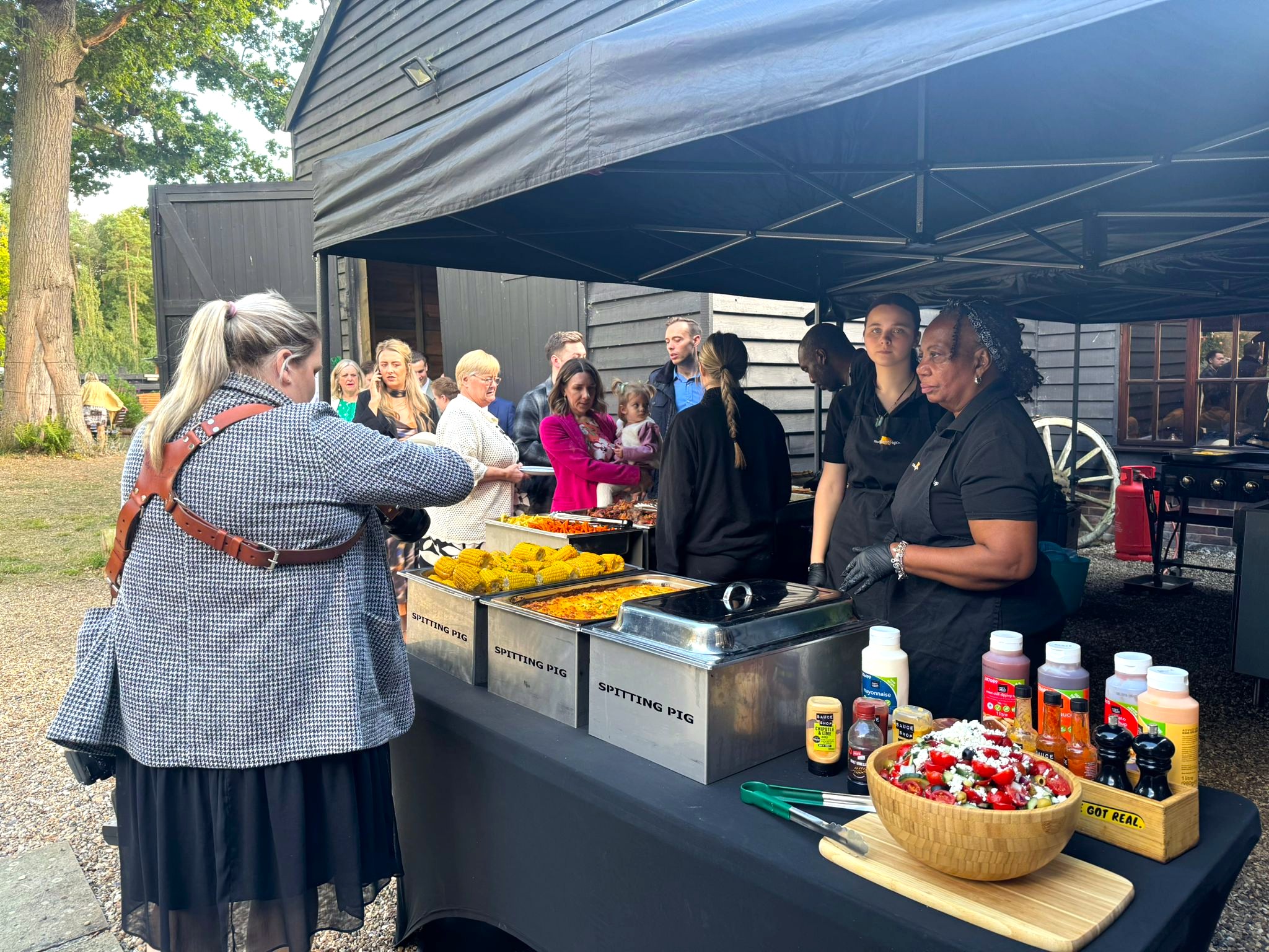 When Amanda called the Hog Roast Maldon team to order catering for her wedding do, we knew it had to be our southern slow roast as soon as we heard the party would be held in the Captains Wood Barn. It matched the vibes and the spice of the day, and guests certainly took to it with aplomb. One by one all 120 guests came by our serving table to scoop up massive portions of our Cajun spiced whole roasted chicken, pulled quarter of minted lamb, and Texan style 24 hour brisket. For some added cooling to all that spice, our creamy mac and cheese, corn cobettes, Greek salad, and medley of sweet and regular potato fries were more than up to the task. Based on the number of return visits and the number of entirely empty plates the Hog Roast Maldon team later cleared up, we think our choice for a southern slow roast went down just as we expected it to: perfectly!
